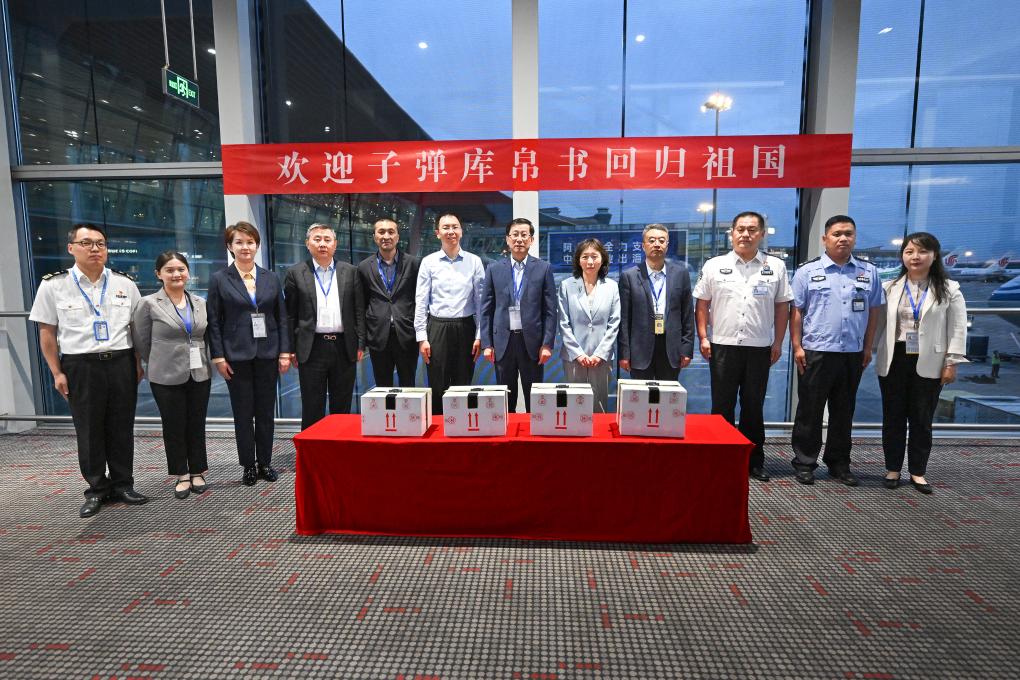 美国时间5月16日,国家文物局在中国驻美国大使馆接收了美国史密森尼学会国立亚洲艺术博物馆返还的子弹库帛书《五行令》《攻守占》。经过查验封箱后,国家文物局工作组马不停蹄,带着它们踏上了回家的路。