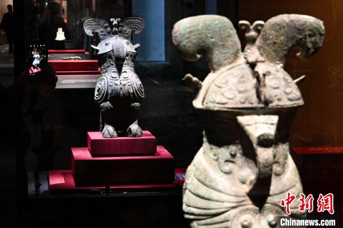5月17日,北京大运河博物馆“看·见殷商”展览展出的鸮尊。 中新社记者 田雨昊 摄