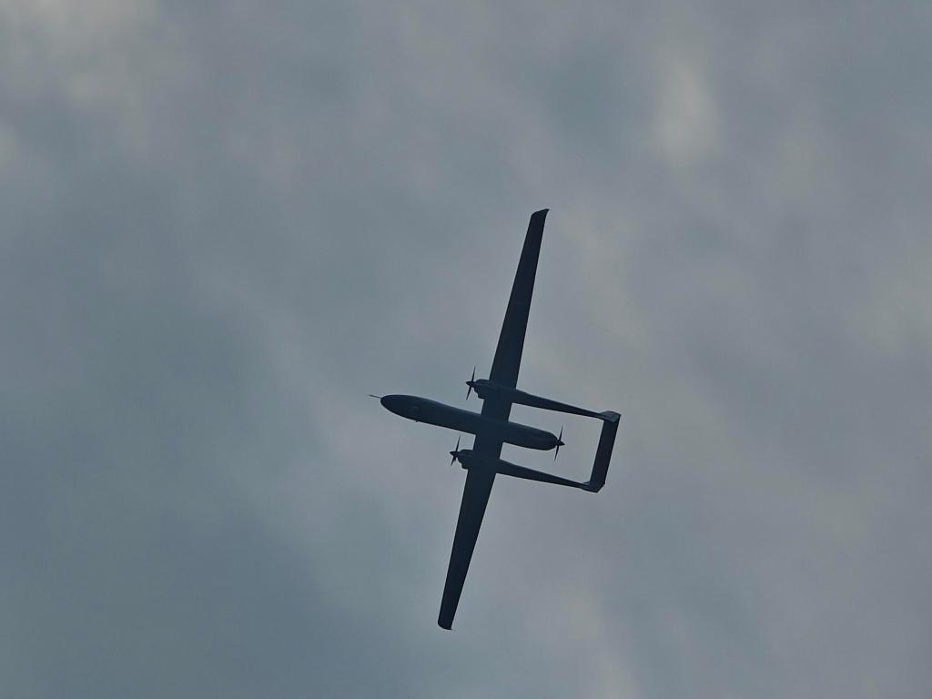 5月18日,人工影响天气专用型“双尾蝎A”无人机系统在飞行中。新华社记者 谢佼 摄
