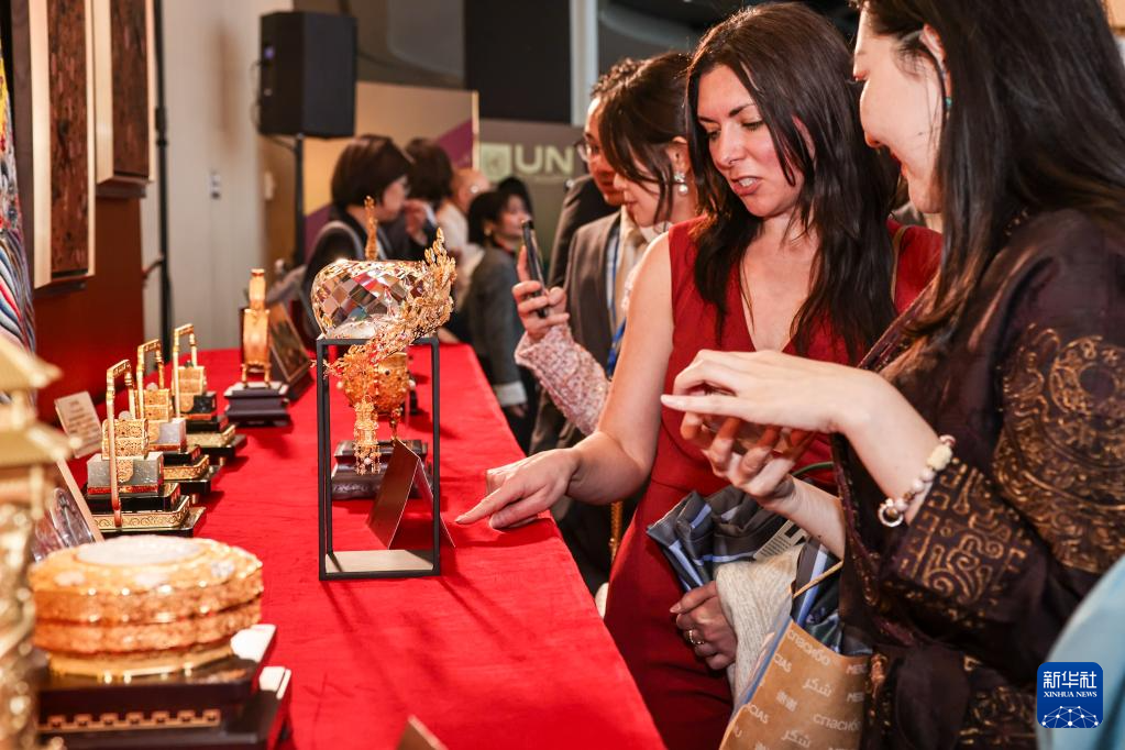 5月19日,在位于纽约的联合国总部,人们参观故宫文创展。新华社发(周焕新摄)