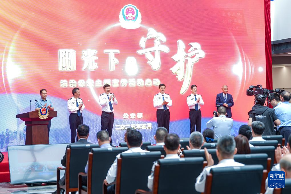 这是5月21日拍摄的启动仪式现场。5月21日,“阳光下的守护”法治公安主题宣传活动在北京启动,活动将充分展示公安机关学习宣传贯彻习近平法治思想、推进法治公安建设举措成效,集中展现新时代新征程公安队伍的新担当新作为,奋力推进公安工作现代化。新华社记者 陈晔华 摄