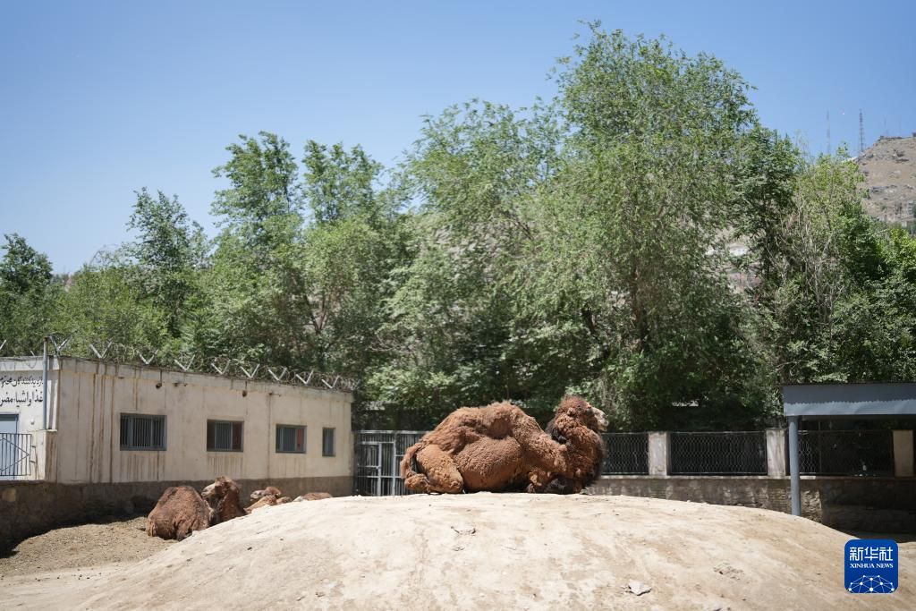 这是5月21日在阿富汗喀布尔动物园里拍摄的骆驼。新华社记者 李昂 摄
