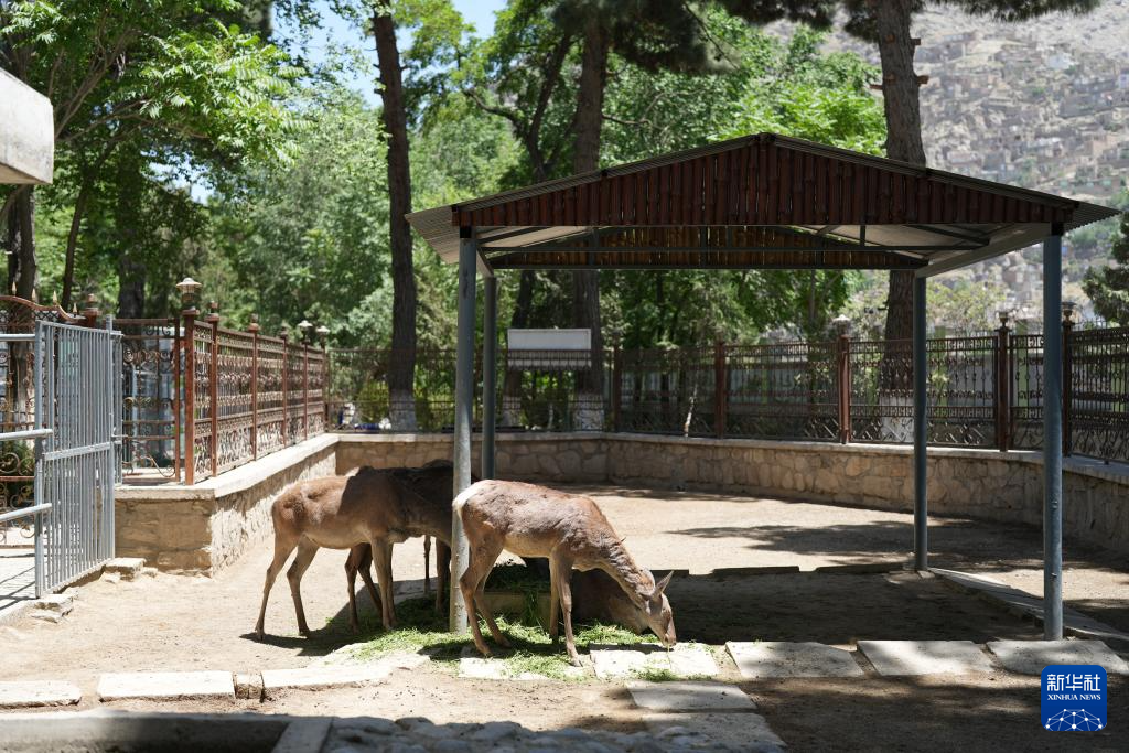 5月21日,阿富汗喀布尔动物园里的鹿在进食。新华社记者 李昂 摄