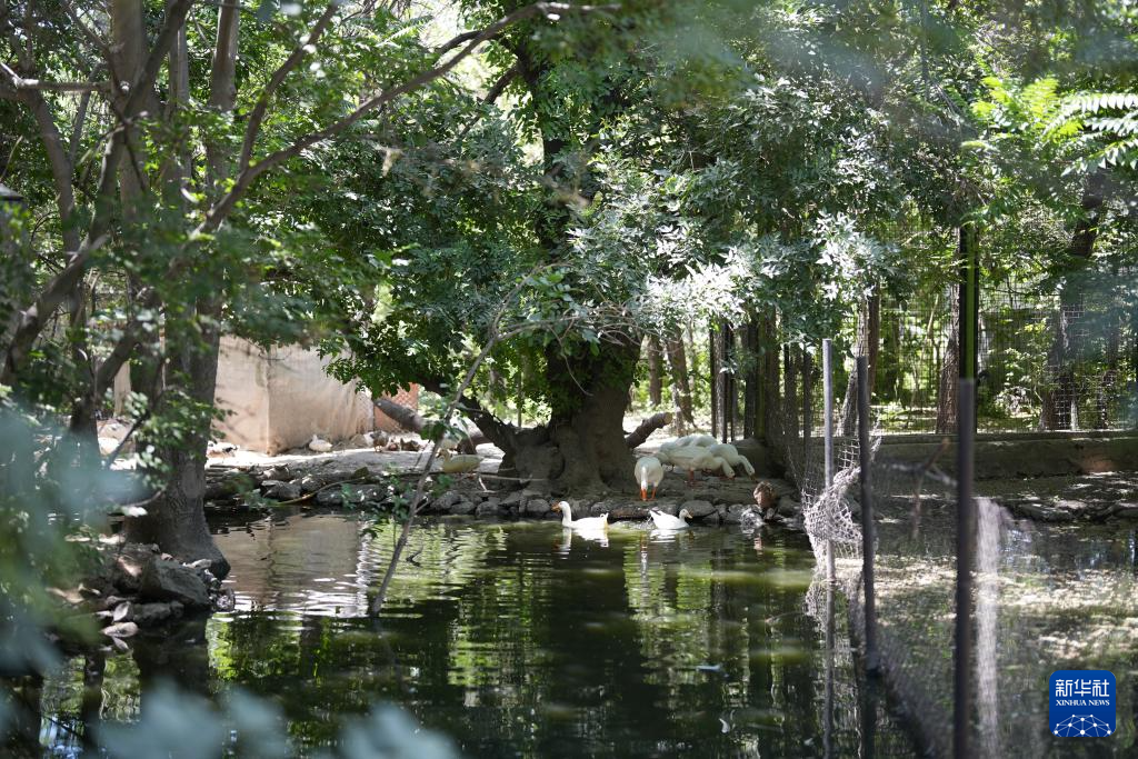 这是5月21日在阿富汗喀布尔动物园里拍摄的鹅群。新华社记者 李昂 摄