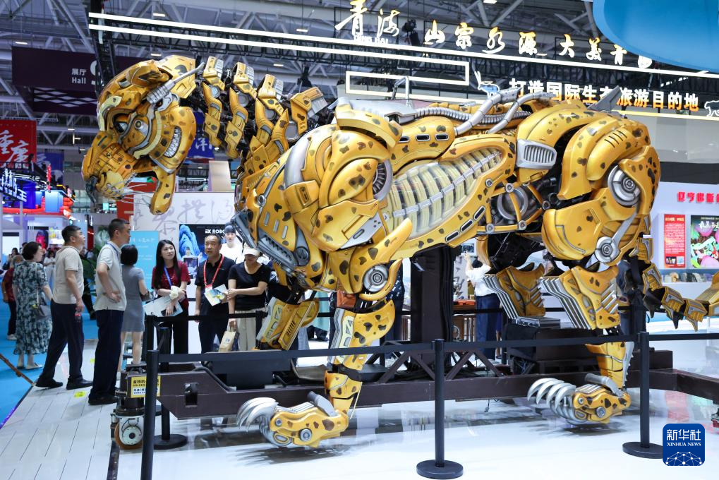5月22日,观众在文博会辽宁展台观看机器人表演。新华社记者 梁旭 摄