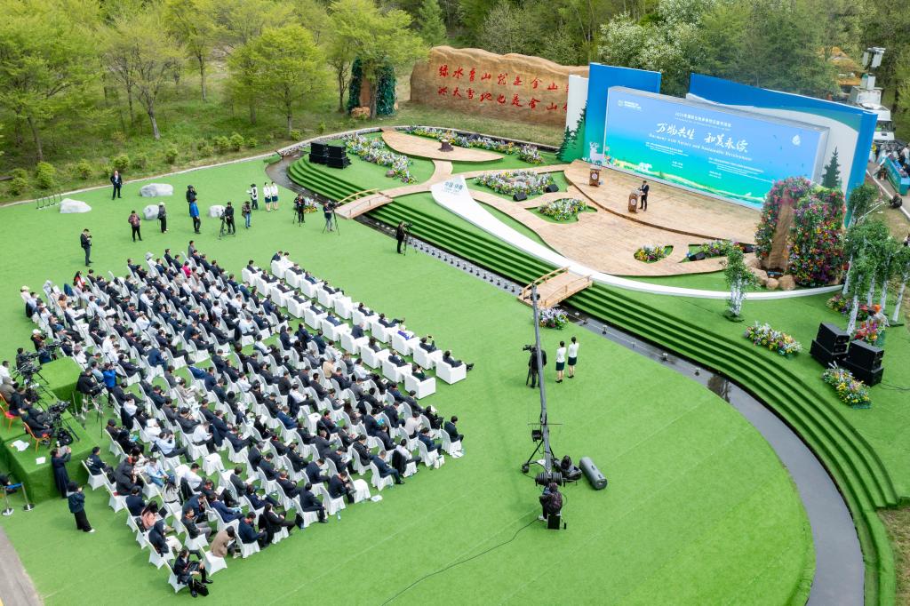 这是5月22日在伊春市溪水国家森林公园拍摄的2025年国际生物多样性日宣传活动现场(无人机照片)。新华社记者 谢剑飞 摄