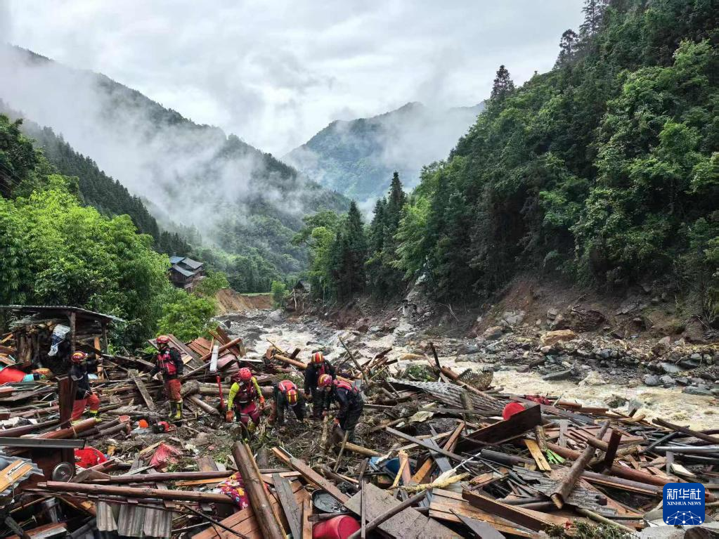 5月23日,救援人员在现场开展救援工作。新华社发(韦吉阳摄)