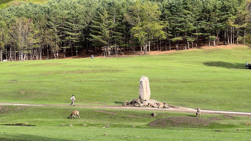 这是游人在金山鹿苑中游玩。新华社记者 张玥 摄