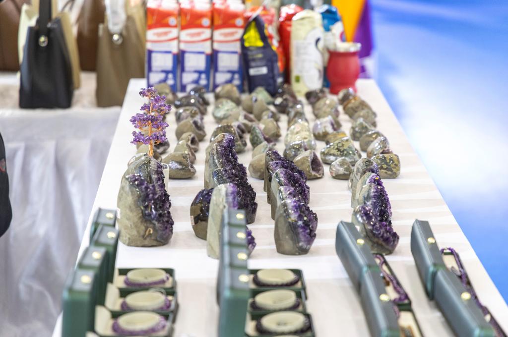 正在重庆举行的第七届中国西部国际投资贸易洽谈会上,乌拉圭展厅内,水晶制品琳琅满目,透着深邃而娇艳的紫色,引得参观者们不时驻足询问。工作人员介绍说:“乌拉圭是全球知名的紫水晶产地之一,色泽与品质堪称顶级,被誉为全球最稀有且珍贵的紫水晶,特别契合‘紫气东来’吉祥征兆的寓意。”