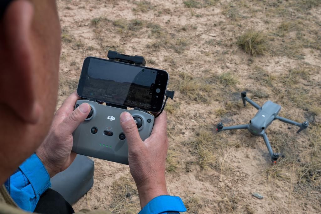 5月12日,李世翔在海原县甯韦堡巡查时使用无人机拍摄照片。