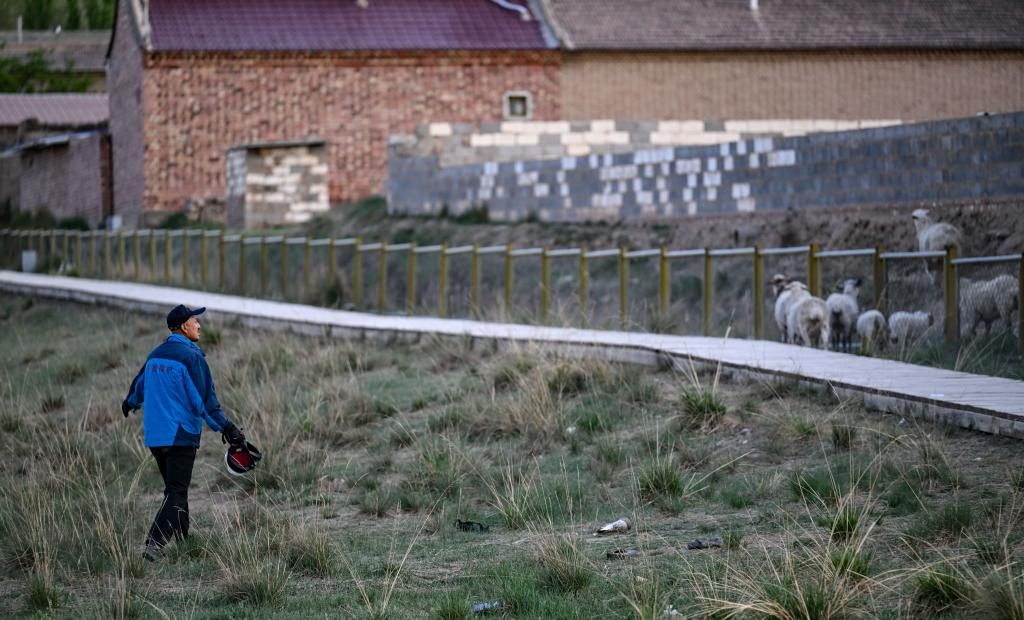 5月11日,李世翔将误入柳州城址的羊群赶出防护栏。