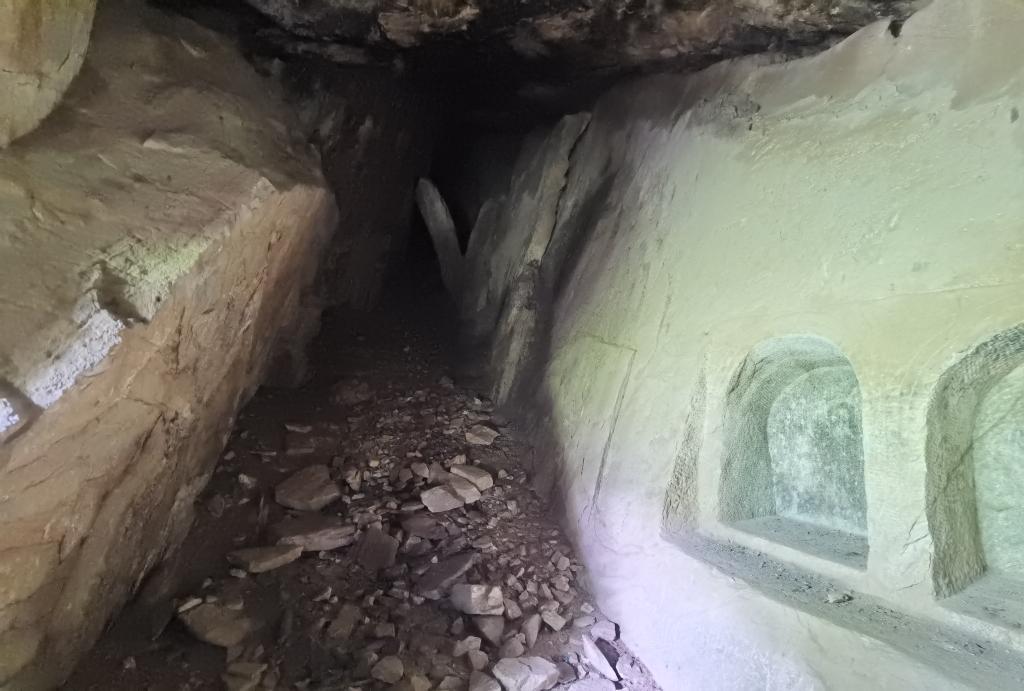 图为西海抗战医院休养所旧址之一的土门杨家山洞内一角。新华社记者王凯 摄