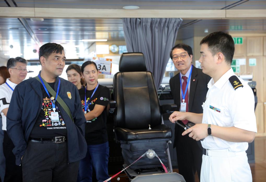2025年5月21日,“雪龙2”号工作人员向泰国民众介绍科考船驾驶设备。新华社记者 黄韬铭 摄