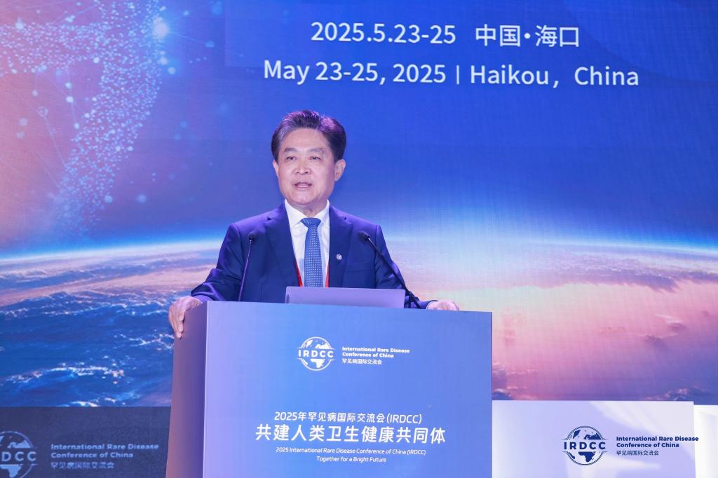 北京协和医院院长、中华医学会罕见病分会主任委员张抒扬在2025年罕见病国际交流会现场讲话。(中国罕见病联盟供图)