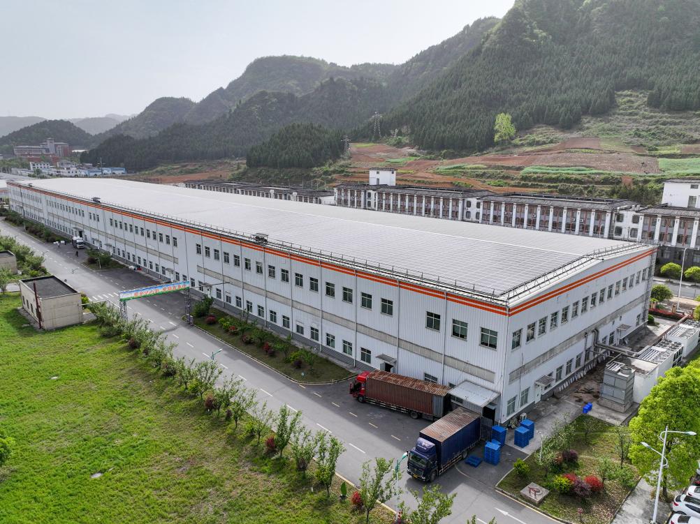 4月14日航拍的贵茶产业园“全球最大的抹茶单体精制车间”(无人机照片)。新华社记者 欧东衢 摄