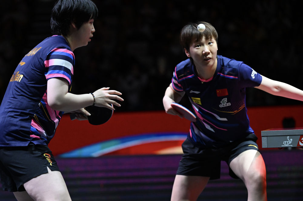 5月25日,在卡塔尔多哈举行的2025世界乒乓球锦标赛女子双打决赛中,中国组合王曼昱/蒯曼3比0战胜跨国组合波尔卡诺娃(奥地利)/斯佐科斯(罗马尼亚),夺得冠军。