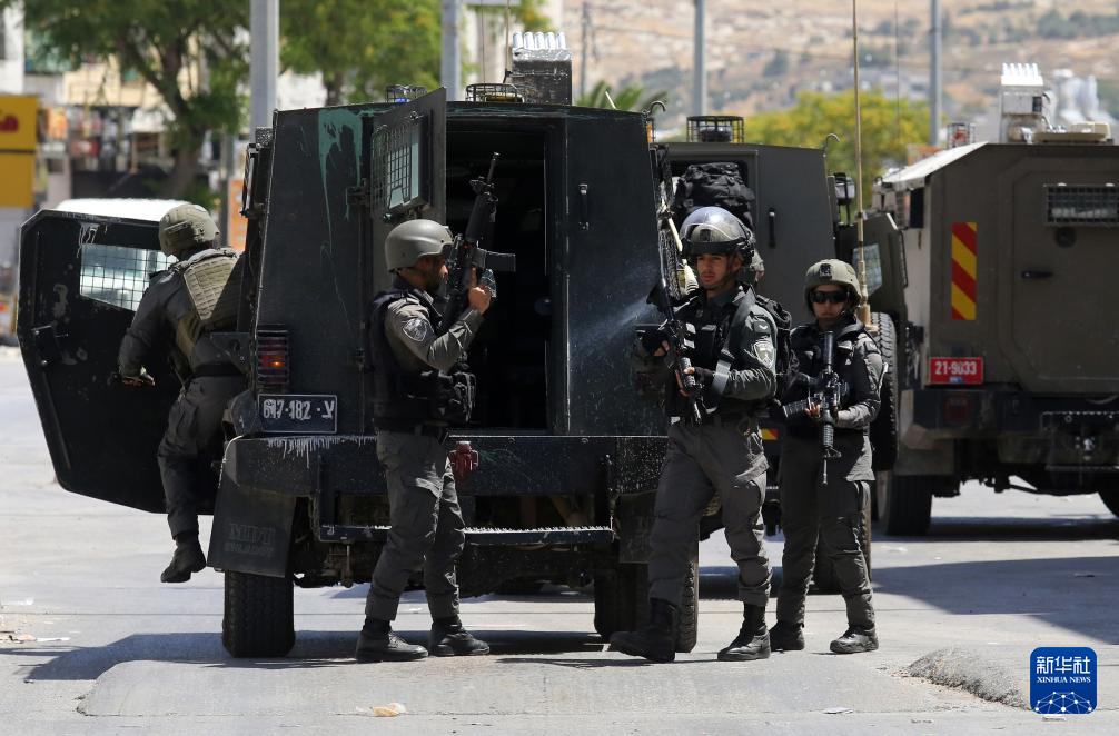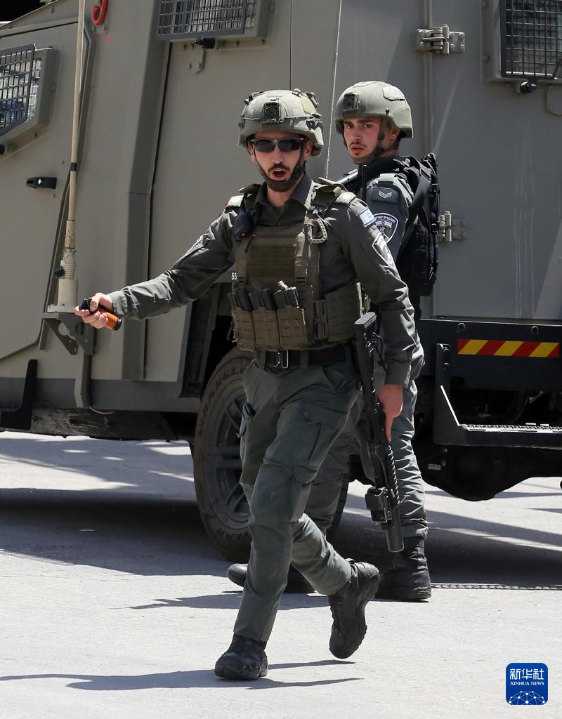 5月20日,以色列警察在约旦河西岸城市纳布卢斯郊区的阿斯卡尔难民营附近开展行动。新华社发(尼达尔·艾仕塔耶摄)