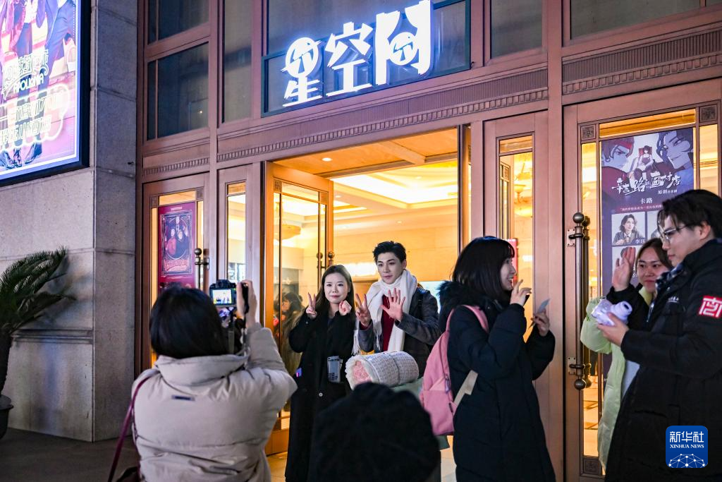 演出结束后,观众在位于上海亚洲大厦的“星空间”剧场外与演员互动(2025年1月5日摄)。新华社发(陈浩明摄)