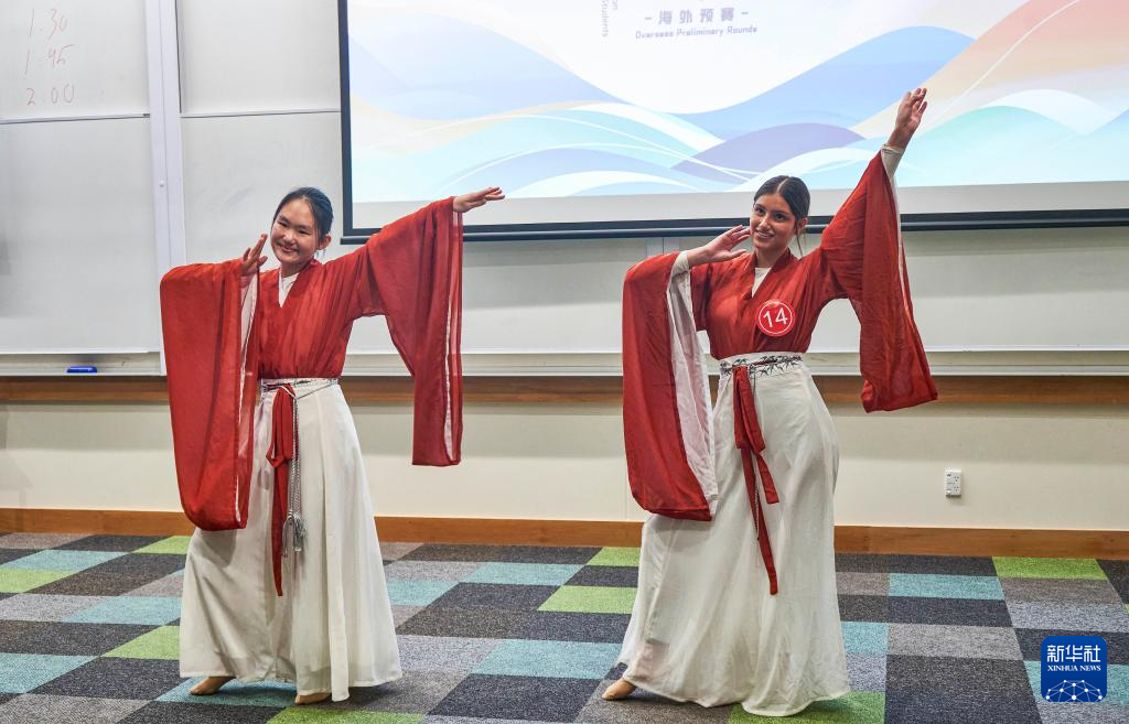 5月25日,在新西兰克赖斯特彻奇的坎特伯雷大学,选手在“汉语桥”中文比赛上表演舞蹈。新华社发(陈思雨蒙摄)