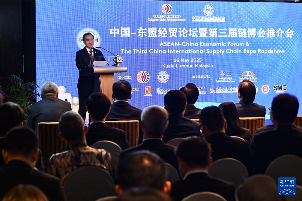 新华社吉隆坡5月26日电(记者王嘉伟 程一恒)中国—东盟经贸论坛暨第三届中国国际供应链促进博览会(链博会)推介会26日在马来西亚首都吉隆坡举行。来自中国、东盟国家的贸易投资促进机构、商协会和企业代表近200人参加。