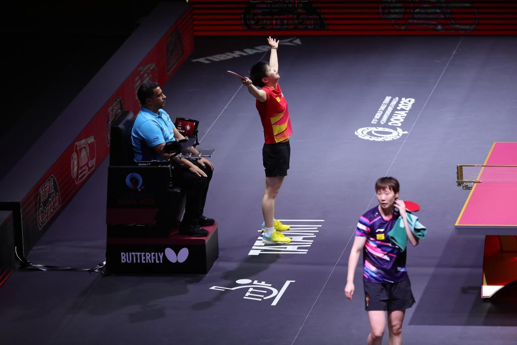 多哈世乒赛现场,光影流转间,竞技激情与科技魅力交织碰撞。