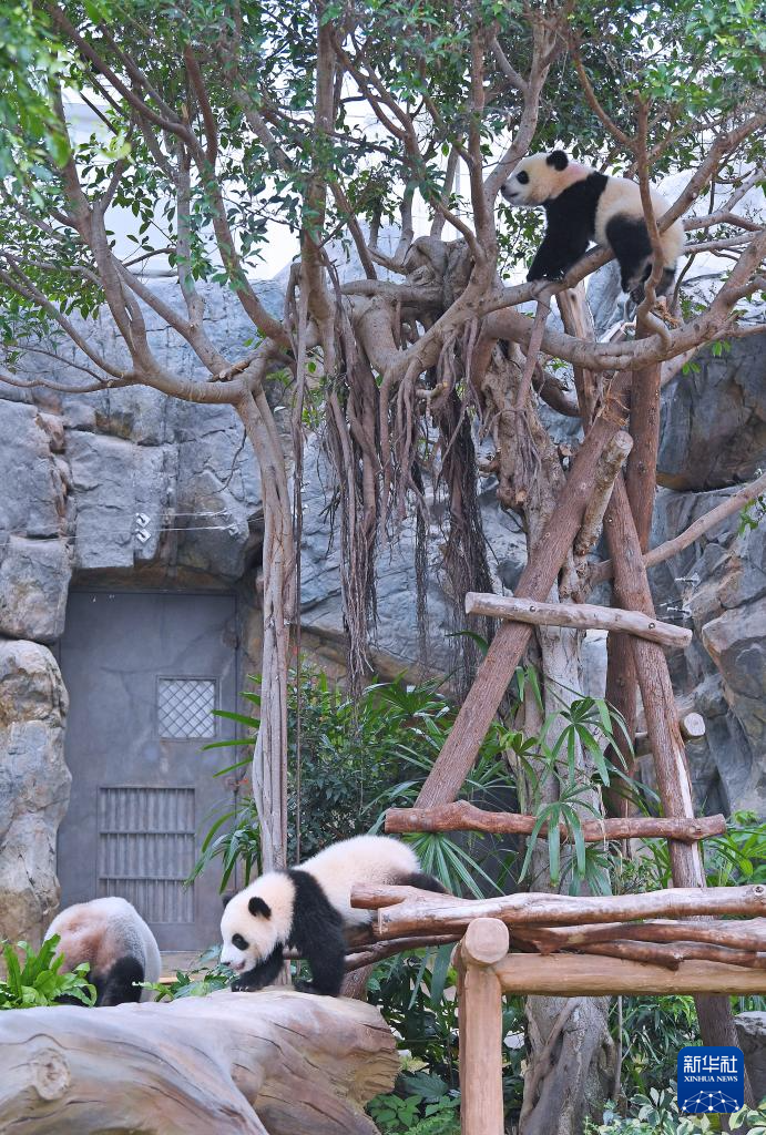 目前“加加”“得得”体能正在稳健发展,越来越喜爱探索四周、挑战自己。香港海洋公园扩大“加加”“得得”与妈妈“盈盈”的生活空间,开放邻近“大熊猫之旅”展馆入口处的高地区域供它们生活。同日起,它们在“大熊猫之旅”中间区域一起与访客见面。市民和旅客可直接在展馆外排队,无需预先领取入场券。