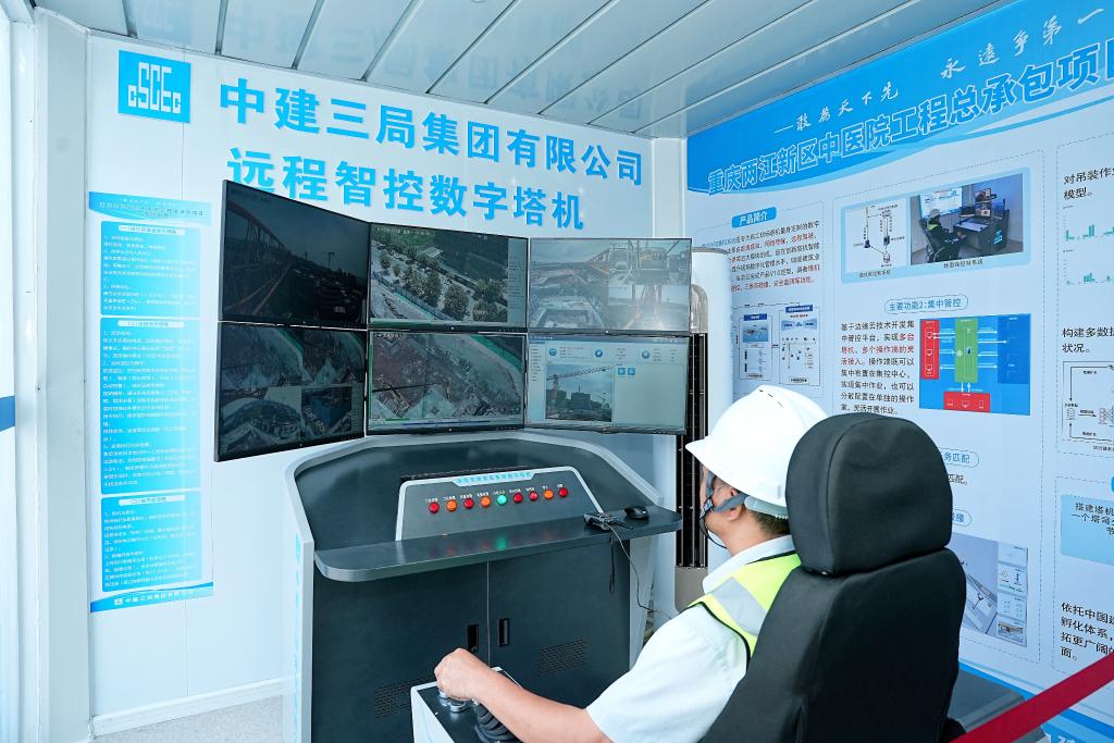 在中建三局重庆两江新区中医院项目现场,最引人注目的是塔吊操控室内人员的“缺席”——操作员正通过远程智能驾驶舱,在百米外操作塔吊进行吊装生产。“传统塔吊需要司机攀爬几十米甚至上百米进行高空作业,现在塔吊司机可以通过远程智能驾驶舱进行操控,误差能精确到厘米级,人员安全风险降低80%。”项目经理龚洪介绍说。