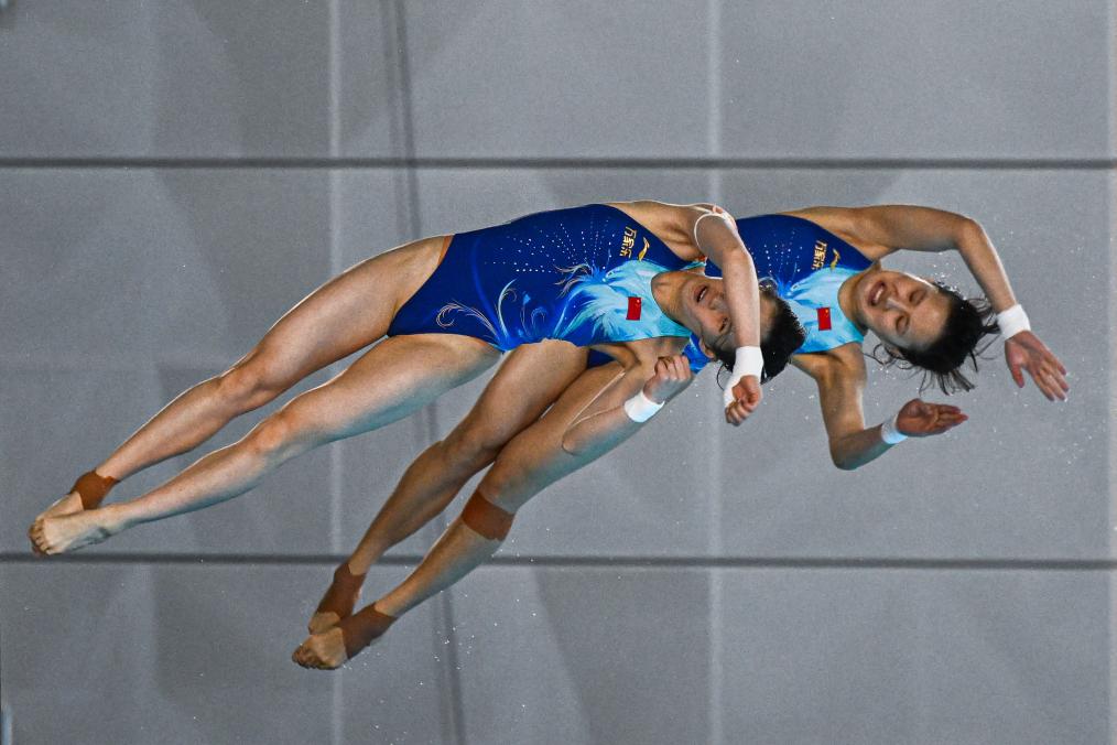 陈芋汐(前)/掌敏洁在比赛中。新华社记者 杜子璇 摄