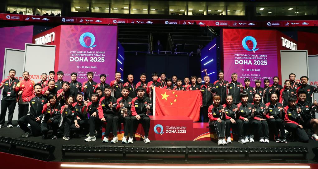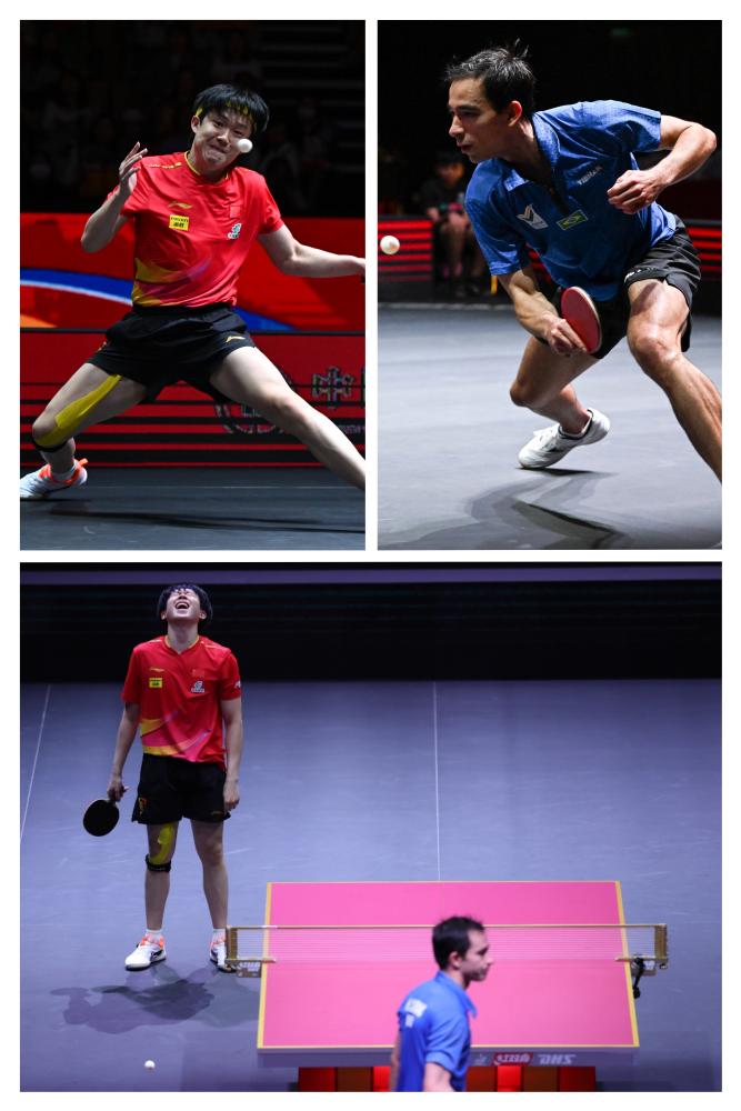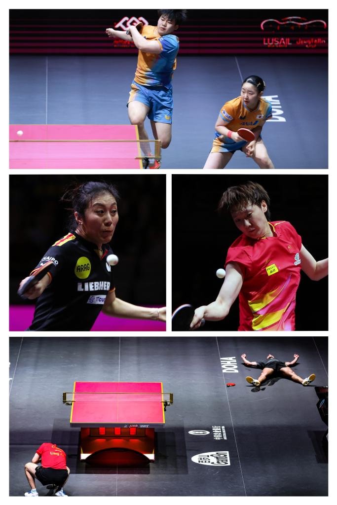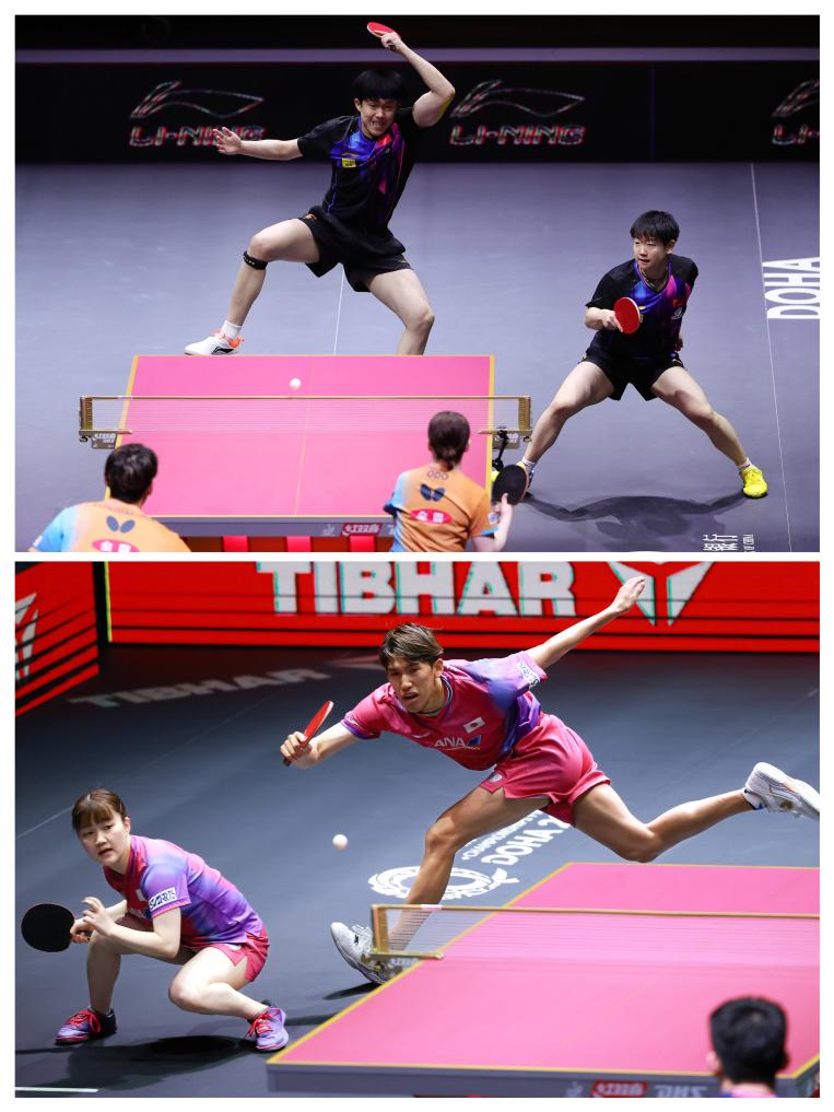 ↑张本美和(上排右)、韩莹(中排左)、王曼昱(中排右)、雨果(下排右)