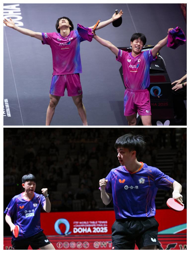 ↑户上隼辅/篠塚大登(上排)与林昀儒/高承睿上演对决