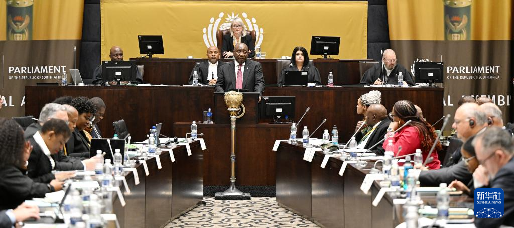 5月27日,南非总统拉马福萨在开普敦出席国民议会会议。新华社发(哈比索·姆卡贝拉摄)