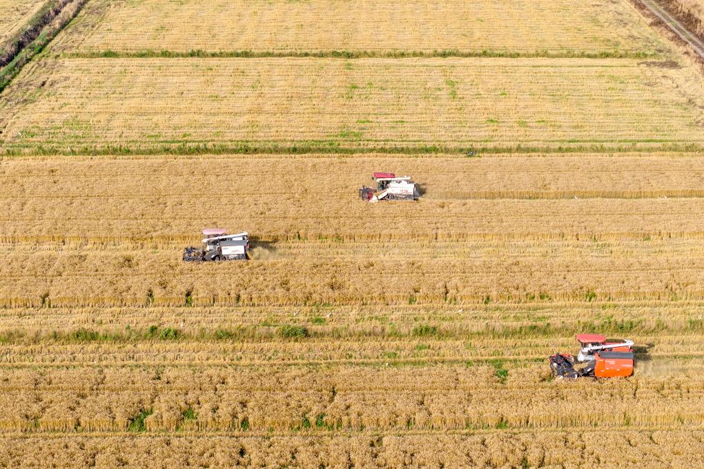 浙江宁波余姚市临山镇小麦机收场景。(张辉 摄)