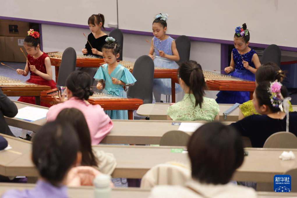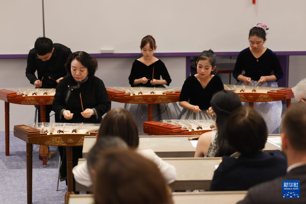 5月28日,在斯洛文尼亚首都卢布尔雅那,中国扬琴艺术团成员在卢布尔雅那大学孔子学院成立15周年庆祝活动上表演。新华社发(泽利科·斯特凡尼奇摄)