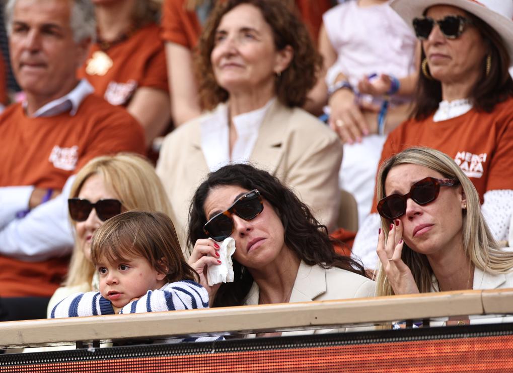 此刻,纳达尔努力控制一整场的情绪开始大爆发。巨头合影,观众山呼海啸,各路嘉宾动容,狭窄的摄影席上,记者们开始痛苦地推搡,长焦镜头叠起了罗汉,独脚架戳着脚尖,相机和手肘角力……所有人都化身三头六臂,双机甚至三机无缝切换,使出浑身解数,在转瞬即逝的时刻,奋力抓取尽可能多的照片。