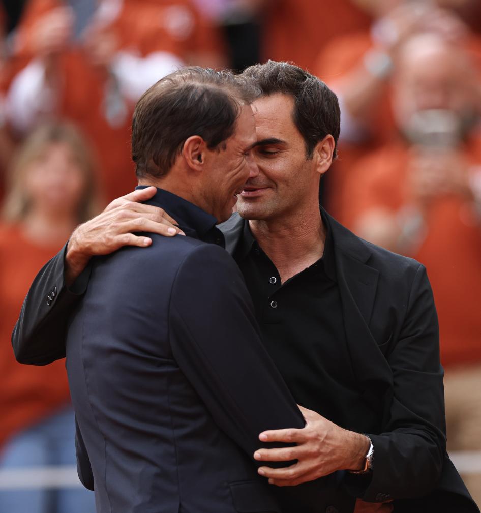 5月25日,费德勒(右)和纳达尔在致敬仪式上。