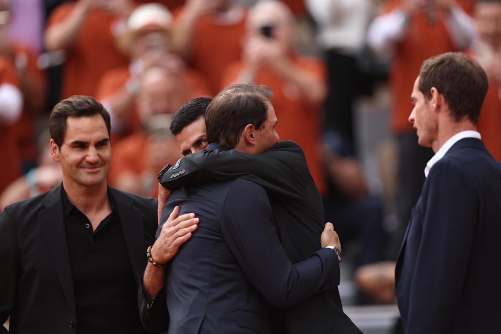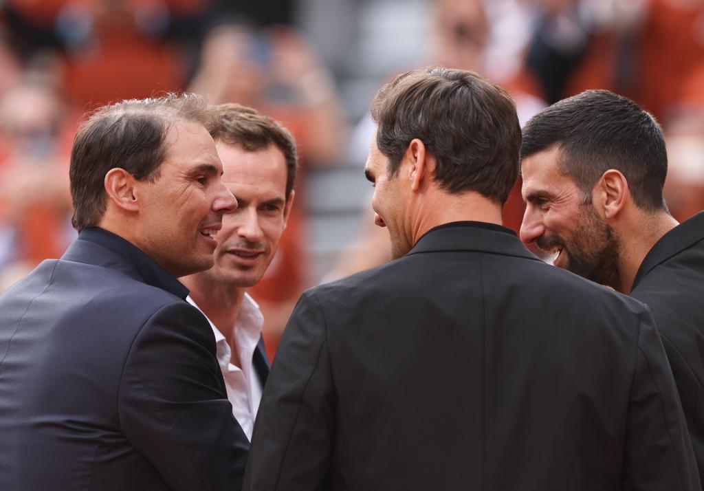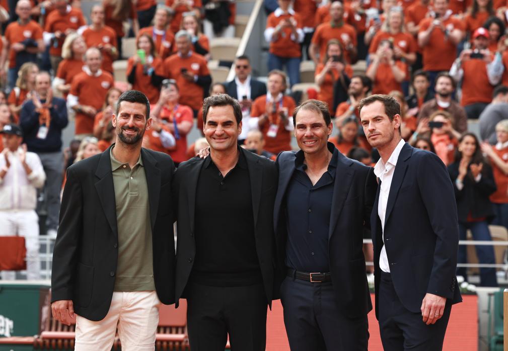 5月25日,纳达尔、穆雷、费德勒和焦科维奇(从左至右)在致敬仪式上。