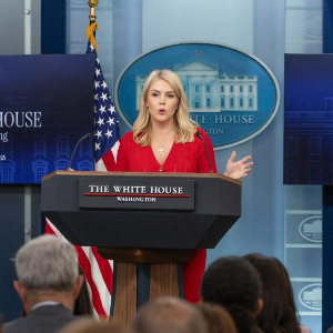 5月29日,在美国华盛顿白宫,白宫新闻秘书卡罗琳·莱维特出席记者会。新华社记者胡友松摄