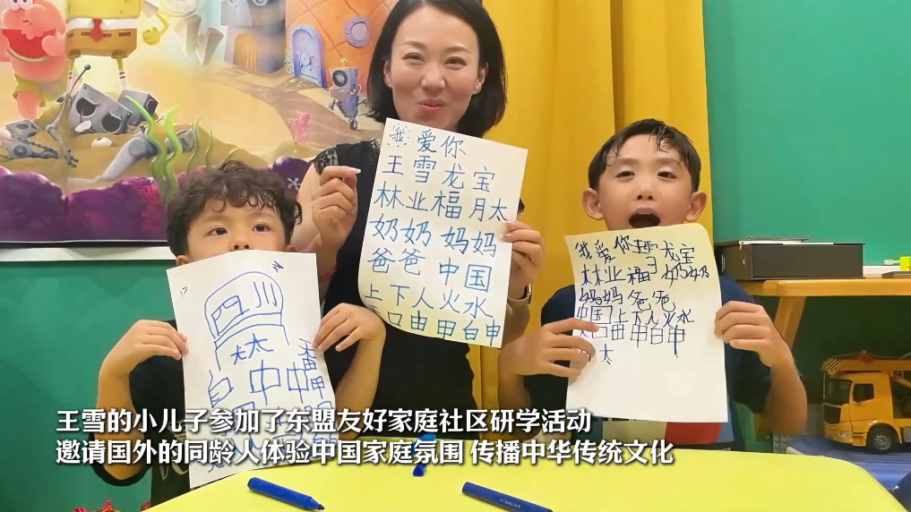 王雪的小儿子参加了东盟友好家庭社区研学活动,邀请国外的同龄人体验中国家庭氛围,传播中华传统文化。