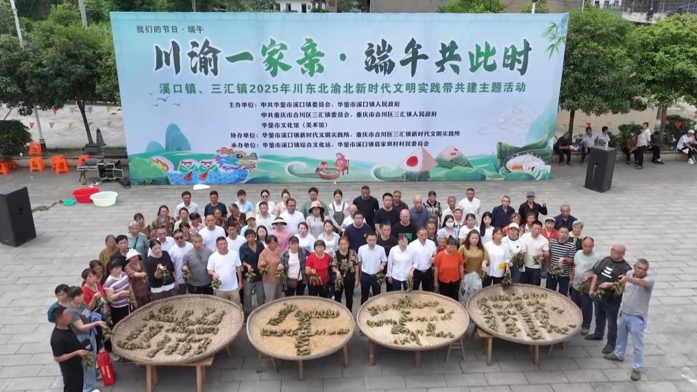 5月28日,在四川省华蓥市溪口镇,当地袁家坝、渔槽、觉庵等8个村、社区的村民代表和重庆市合川区三汇镇康家等3个村的村民代表1000多人齐聚一堂,开展千人包粽子活动,感受传统民俗,迎接端午佳节。