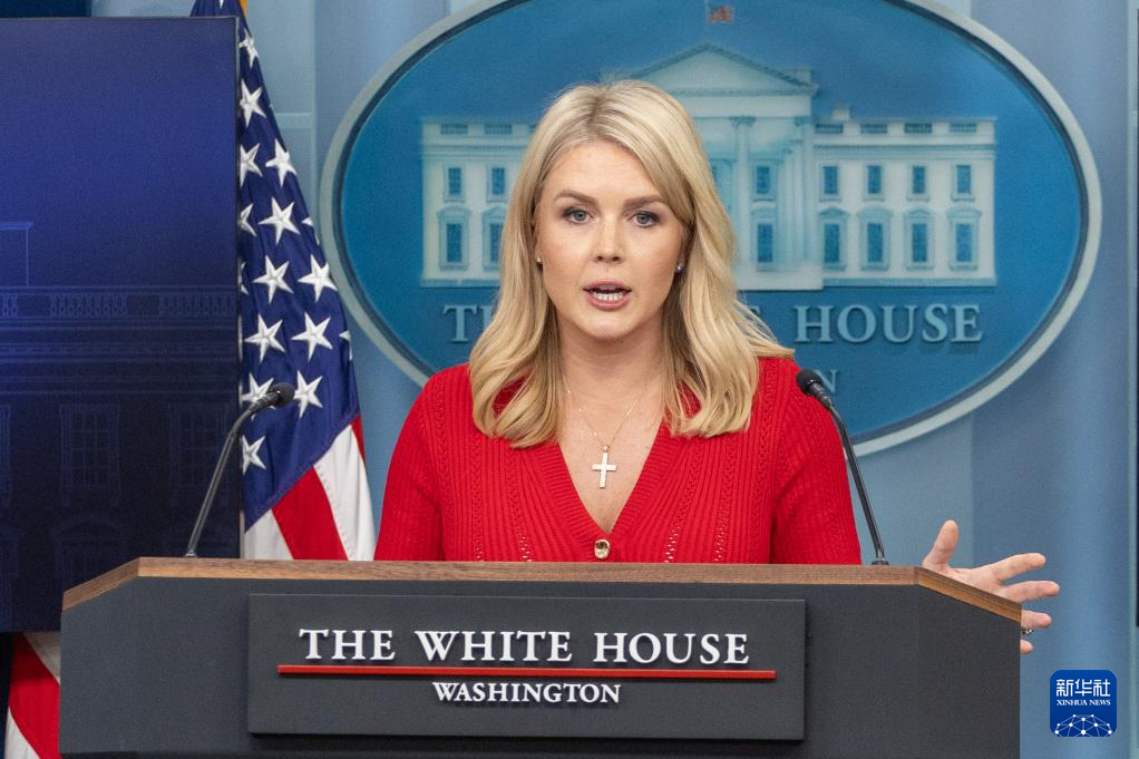 5月29日,在美国华盛顿白宫,白宫新闻秘书卡罗琳·莱维特出席记者会。新华社记者 胡友松 摄