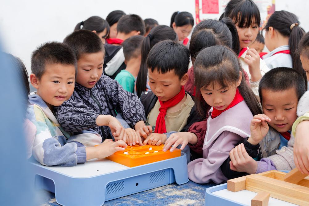 5月28日,在云南省昭通市大关县翠华镇庆云小学,学生们体验益智玩具。新华社记者 高咏薇 摄