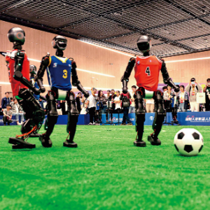 5月29日,机器人“选手”参加足球比赛。当日,2025国际人形机器人技能大赛在2025张江具身智能开发者大会上正式启动。新华社记者 方喆 摄