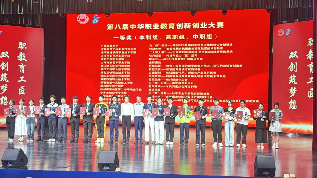 图为第八届中华职业教育创新创业大赛闭幕式上的颁奖环节。新华社记者王自宸 摄