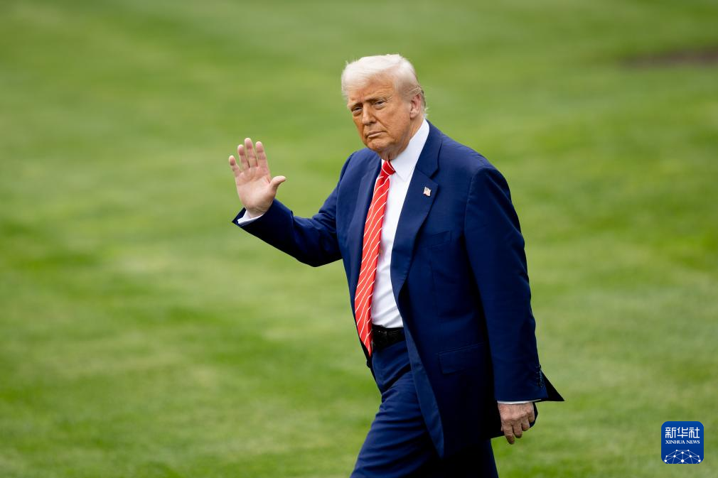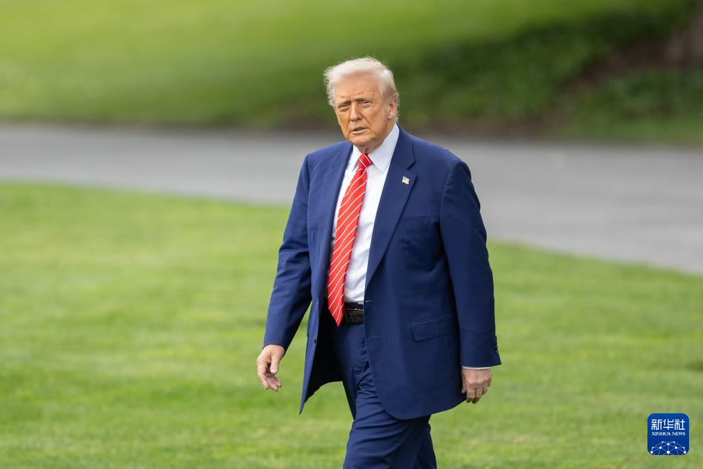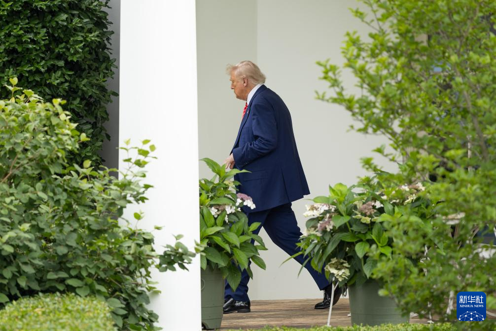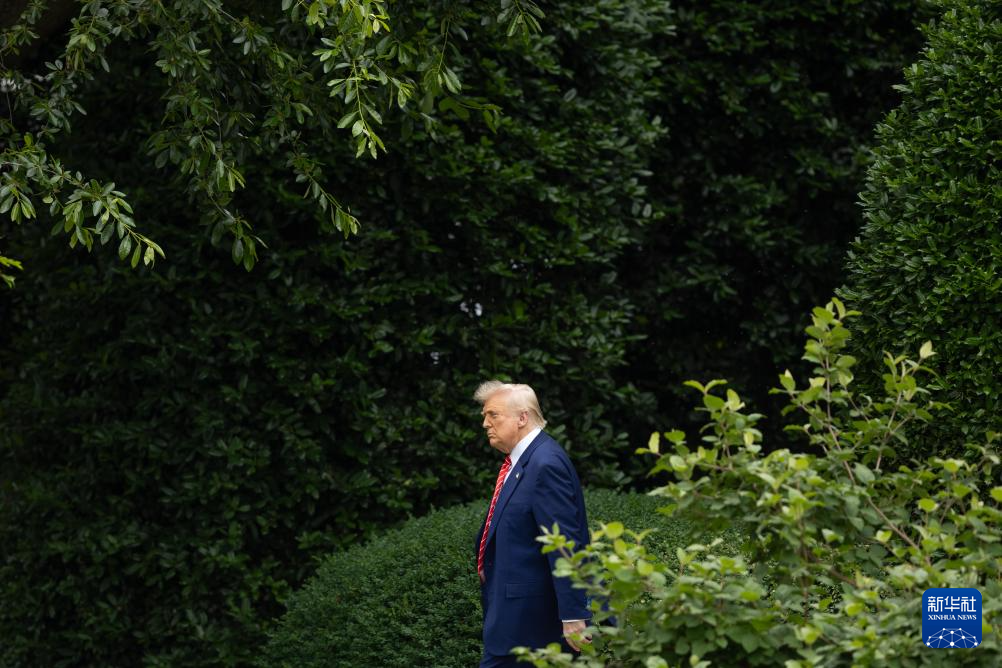 5月30日,在华盛顿白宫,美国总统特朗普走向南草坪准备登机。新华社记者 胡友松 摄