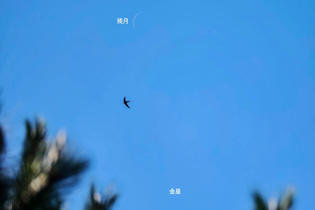 2025年5月24日白天在北京海淀区拍摄的残月和金星。(王俊峰 摄)