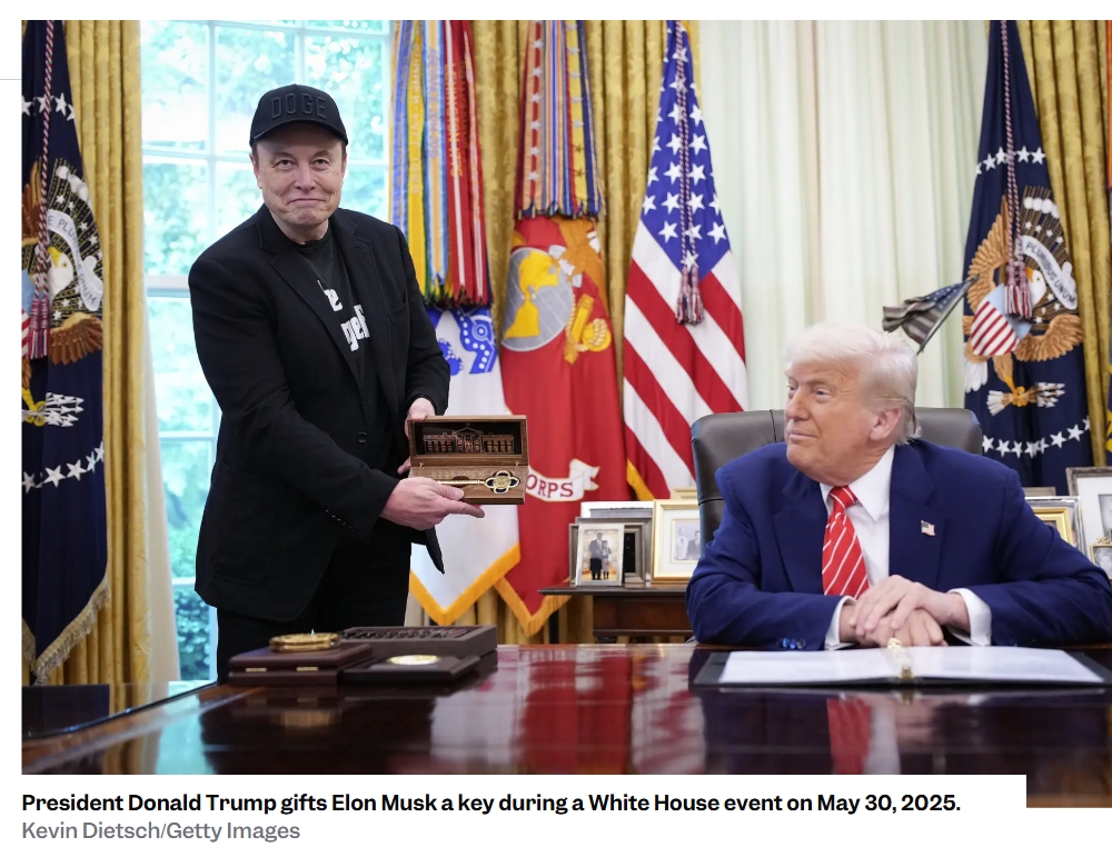 近日,马斯克与特朗普在联邦财政政策上也暴露分歧。22日,美国共和党人掌控的国会众议院以一票优势艰难通过被特朗普称为“大而美”的大规模税收与支出法案。马斯克27日在接受哥伦比亚广播公司采访时表达不满。“坦率地说,我对这项法案感到失望,不仅没有削减预算赤字,反而进一步扩大了它,这与政府效率部正在推进的目标背道而驰。”