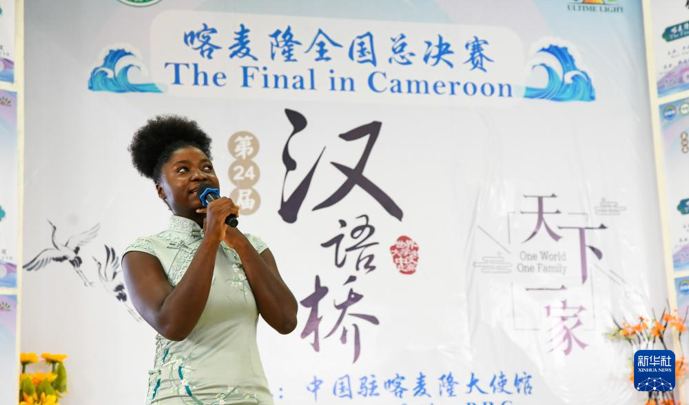 5月30日,在喀麦隆雅温得第二大学孔子学院,一名选手在第24届“汉语桥”世界大学生中文比赛喀麦隆全国总决赛上演讲。新华社发(科普索摄)