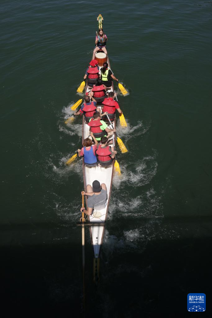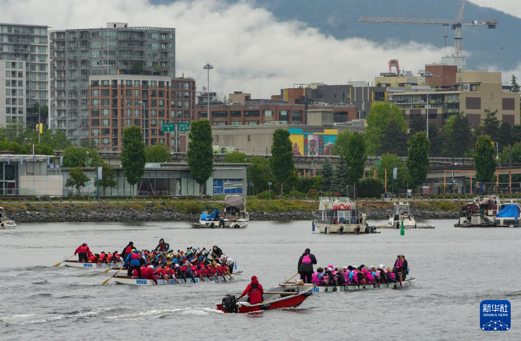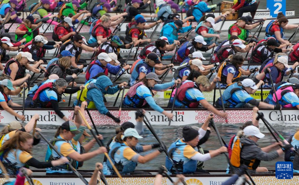 5月31日,在加拿大温哥华,人们参加龙舟赛。