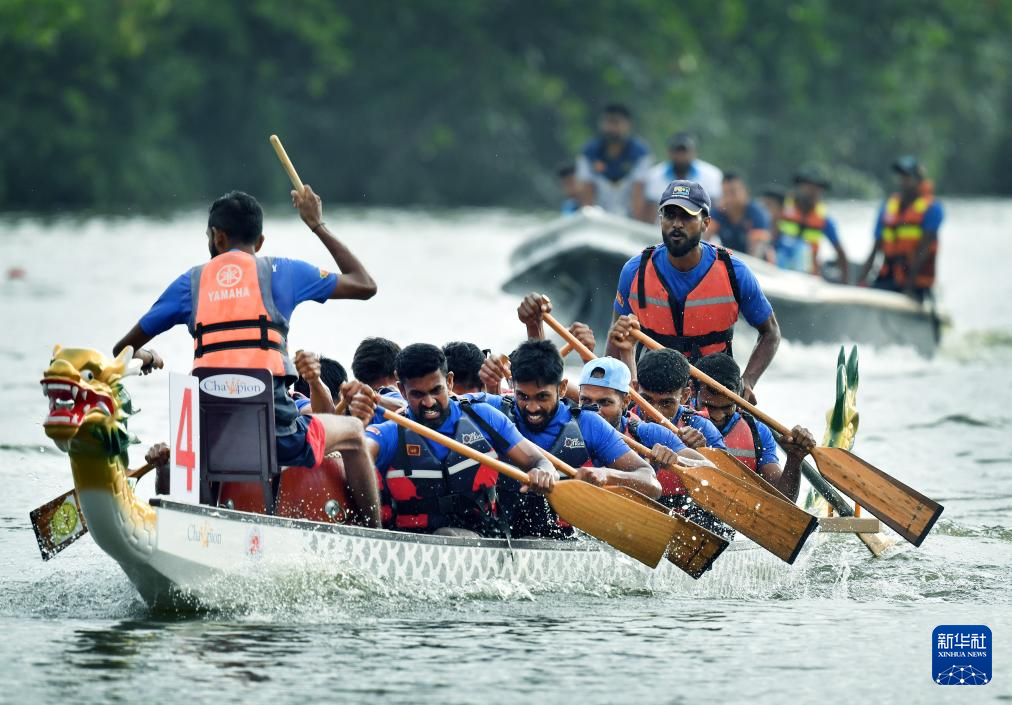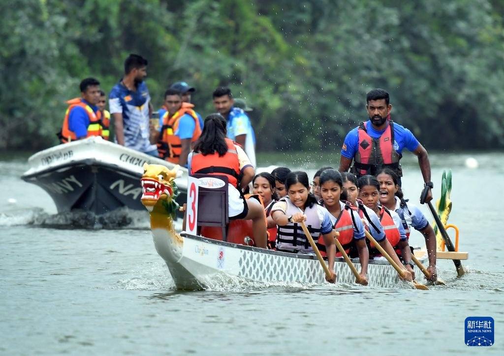 5月31日,在斯里兰卡科特,人们参加2025年端午节中斯友谊杯龙舟赛。