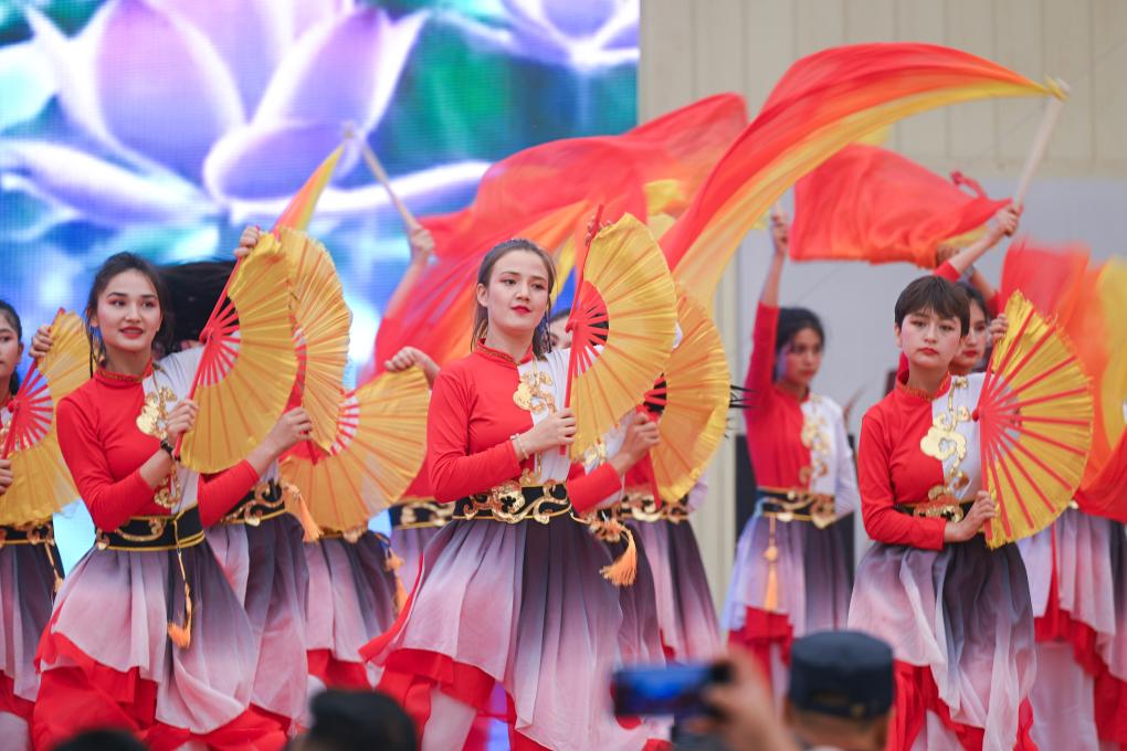 2025年5月30日,2025中国环塔国际拉力赛新疆喀什地区麦盖提赛段欢迎晚会上的歌舞表演。新华社发(环塔组委会供图)